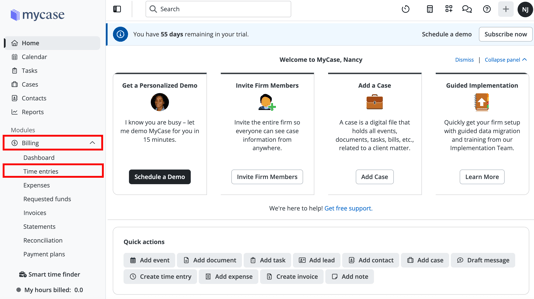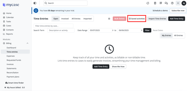 - To see your firm's list of Saved Activity codes, go to your MyCase account and click on Billing > Time Entries.