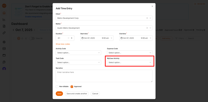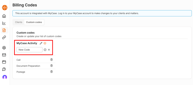 Note: the following only applies to MyCase activity categories. MyCase does not currently support auto-syncing of UTBMS/LEDES codes. To use UTBMS codes, we recommend the manual MyCase CSV export.