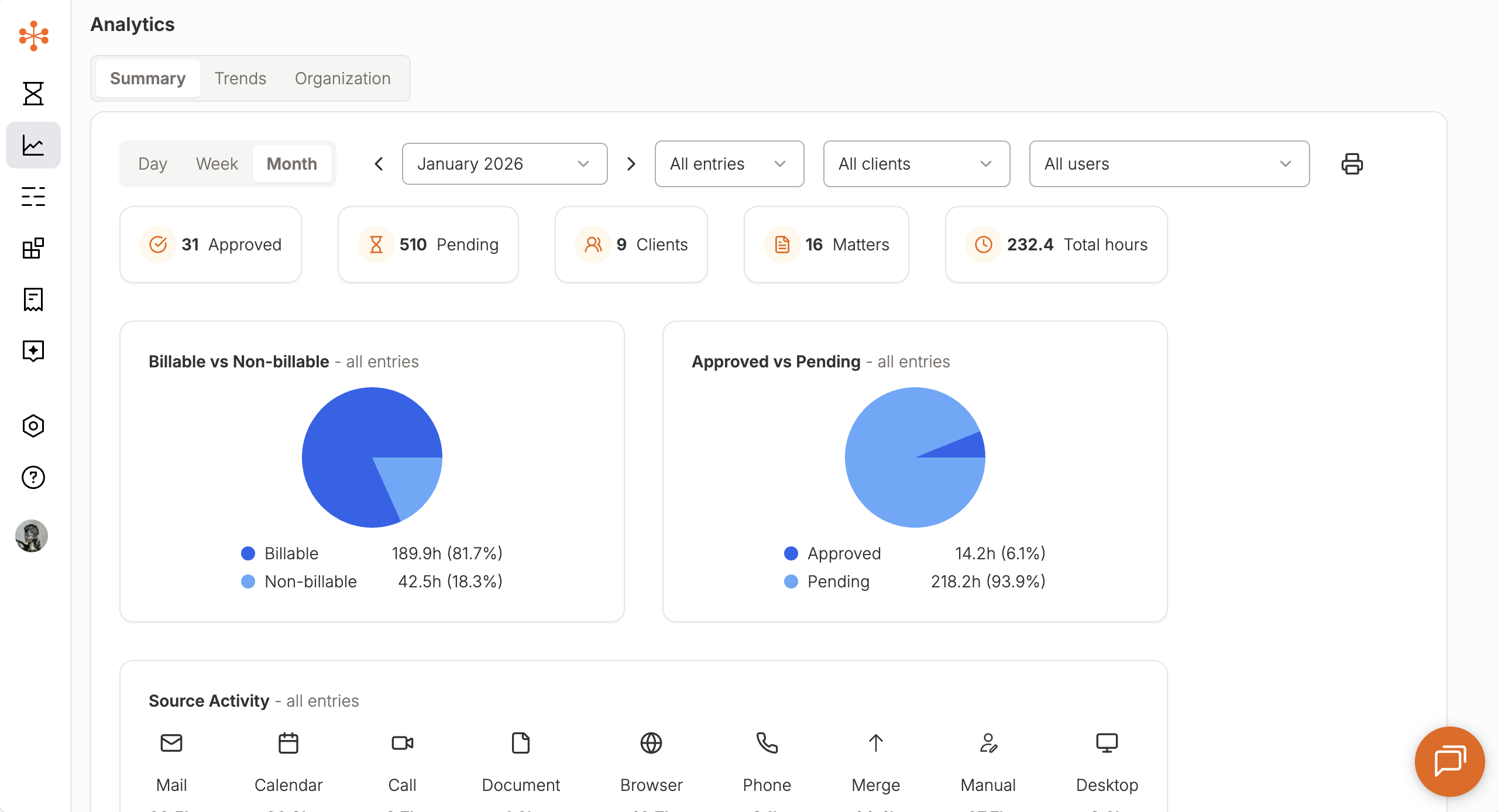 - See how much time is spent across different clients and matters