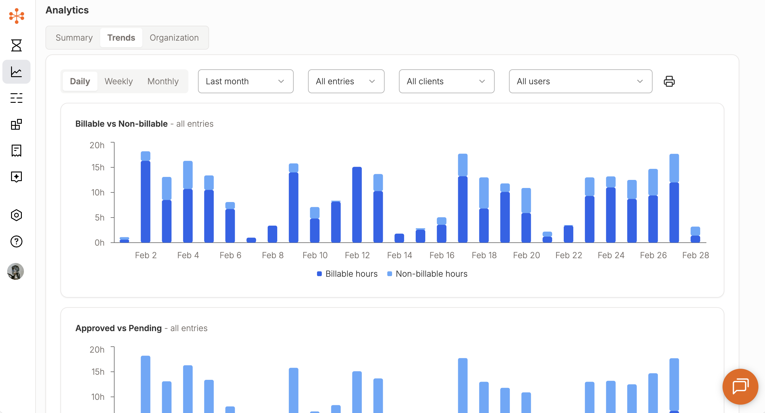 Analytics allows you to visualize your time trends across different timeframes: