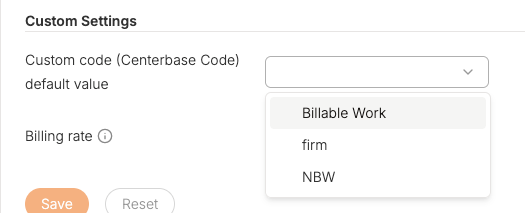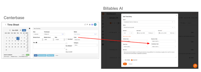 Billables AI automatically syncs your Centerbase codes as a custom code in Billables AI.