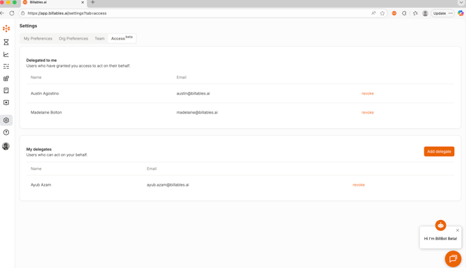 Note: A delegate must be a Billables Admin.