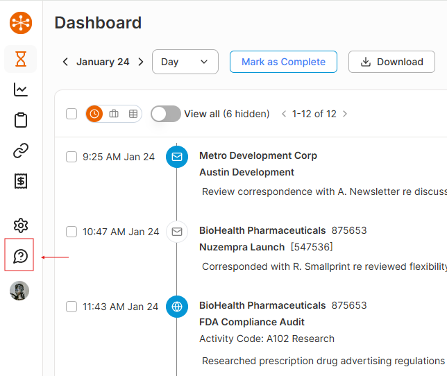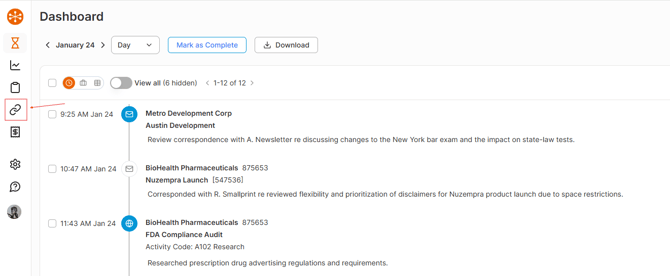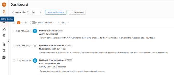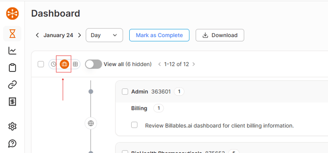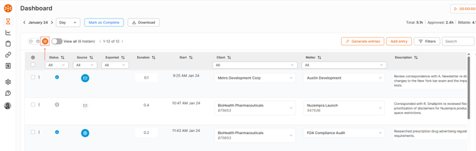 Billables AI occasionally hides entries it deems less relevant, functioning like a spam folder. To review all captured activities, toggle the View all option. Restore any item by approving it, and it will be returned to the main dashboard.