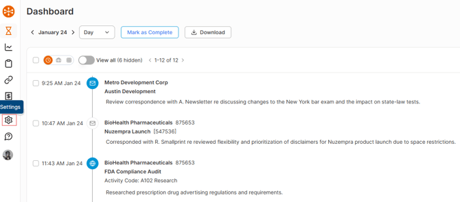 To better adjust your records to your firm's preferences, visit the settings page to customize your dashboard entries, narrative descriptions, and more.