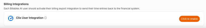 The organization must first have Billing Code integrations enabled with Clio before individuals can activate their Clio export.