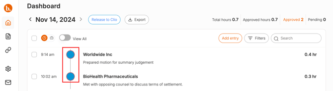 Clio requires a matter to be associated with each time entry. Before releasing time, make sure all of your approved entries have a matter assigned.