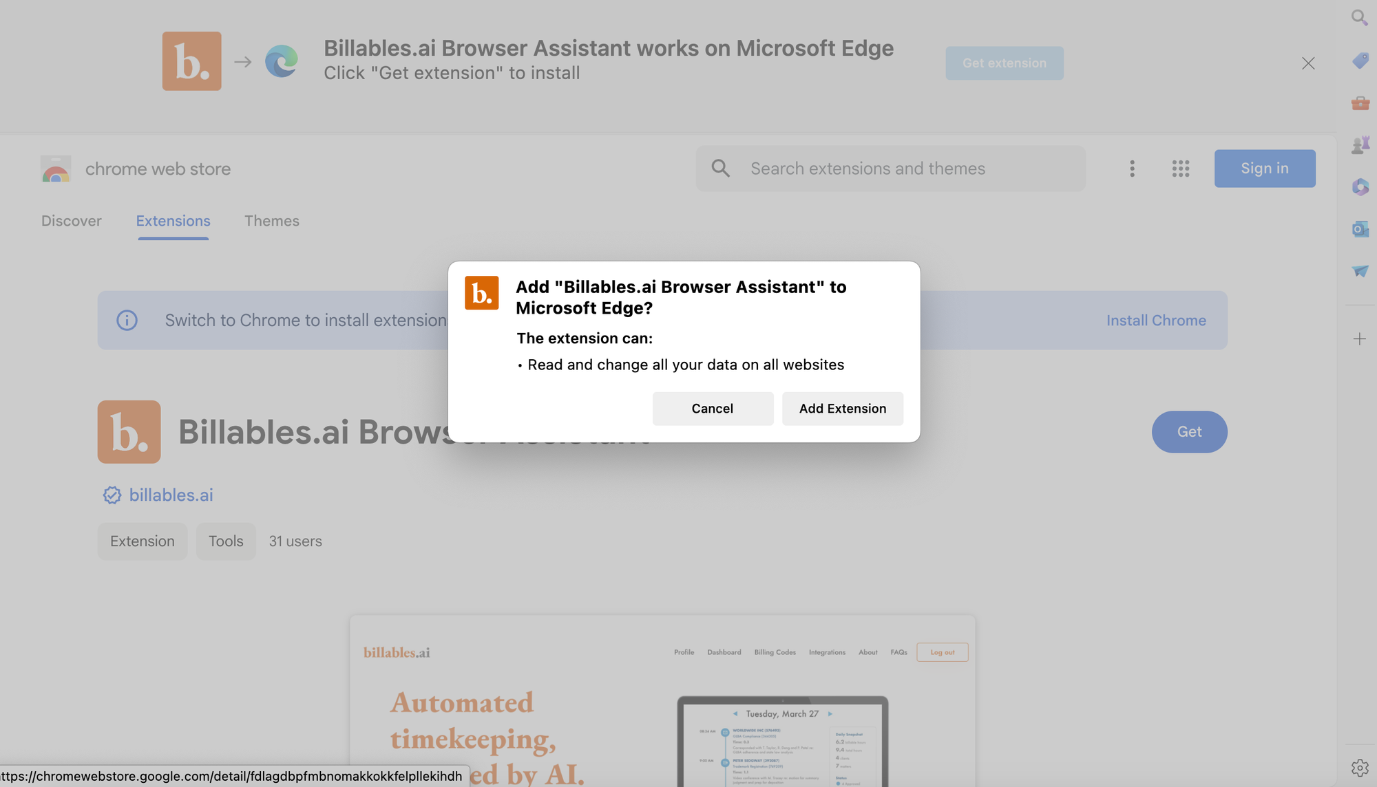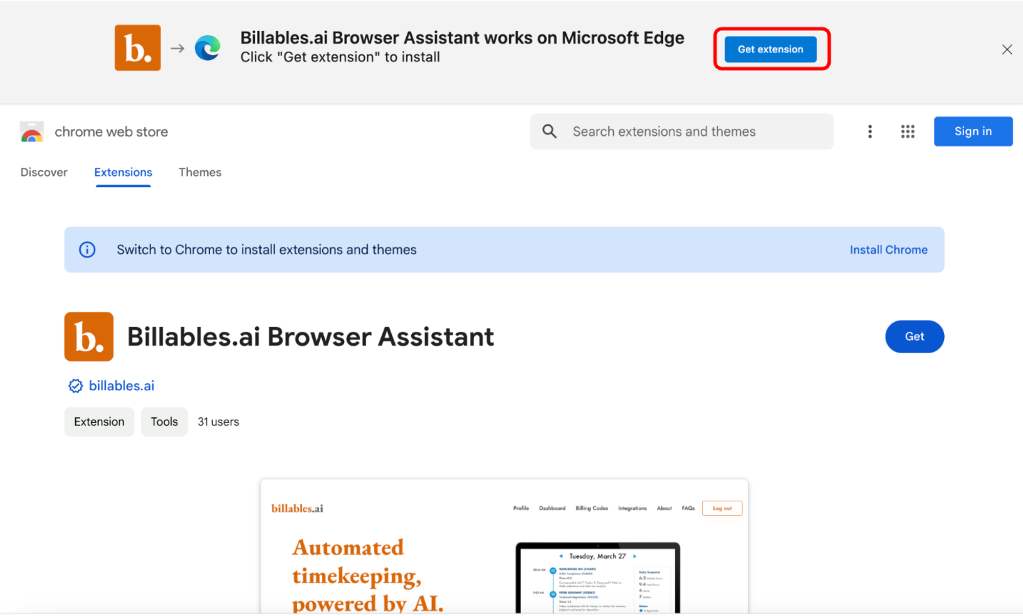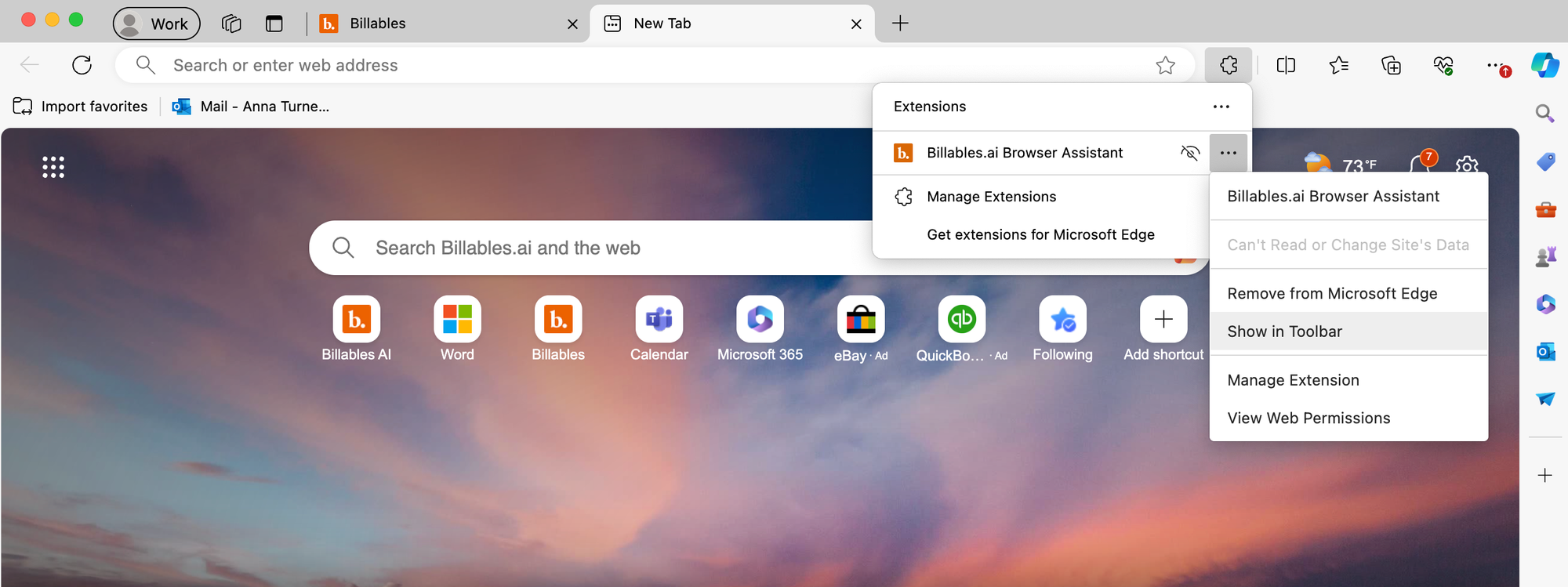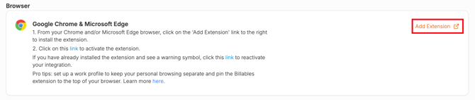 💡 Tip: Create separate Edge profiles for work and personal browsing to keep activity separate. You can choose to only install the Billables extension on your work profile.