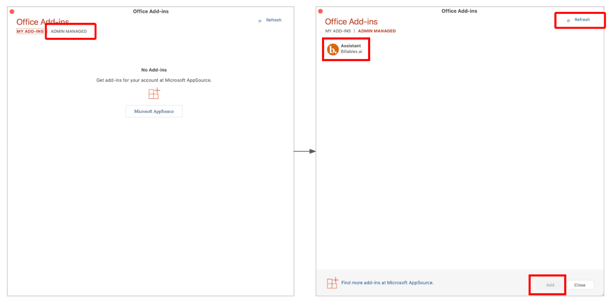 If an IT admin has only recently (within 24 hrs) deployed the Add-in, it may take a while for Microsoft to push it out to all the users. In this case, you can 'force' load the Add-in with the following steps:
