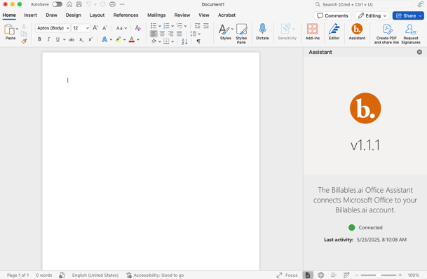 Find the Billables Add-in in the overflow menu ( … ) under the Add-In menu, then click to enable.