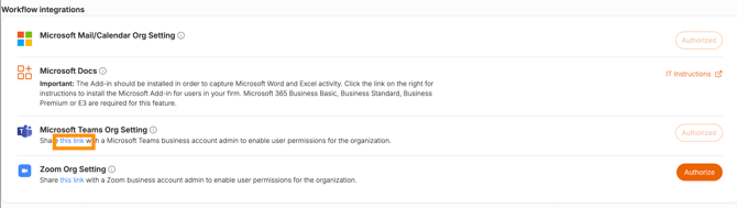 Systems administrators with company-level administrative privileges for Microsoft 365, Teams and Zoom can follow these steps to grant Billables AI integrations access to employees within the organization.