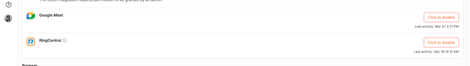 If the integration was successfully set up, you will be redirected back to the integrations screen and the Google button will now read "Click to Disable". You will also start seeing time stamps for your last Google activity.