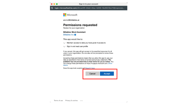 If you are an external IT admin, please send an email to support@billables.ai with the name of the client company and contact person to request the admin consent link.