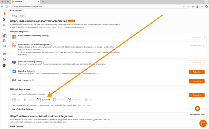 Step 1: Select SurePoint from the Billing Integrations section of the Integrations Page:
