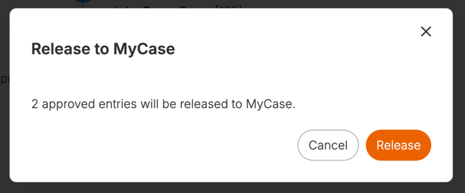 When you are ready to review and release your time, head to your dashboard and make sure you have some approved entries for that day. The click the "Release to MyCase" button to send all approved time entries to MyCase.