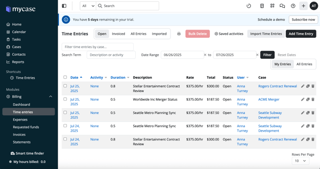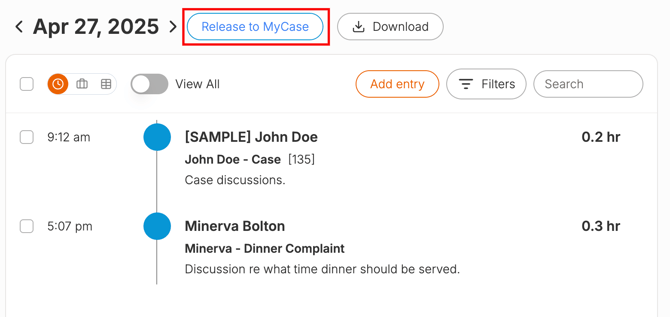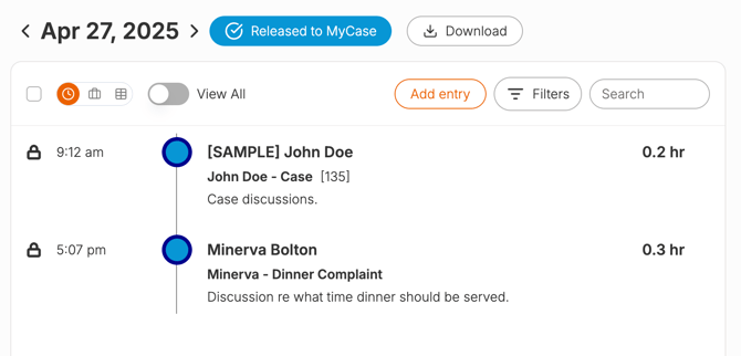 You'll see your released time entries in MyCase under the "Time Entries" tab: