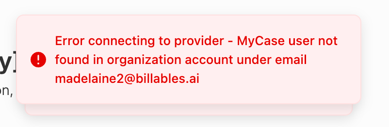 Your MyCase account, Billables account and Microsoft/Google account should all have the same email in order to sync properly.