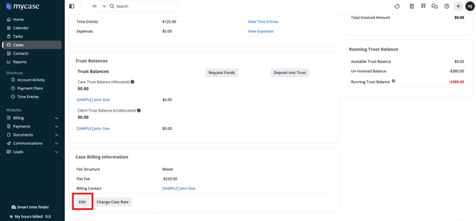 Go to the Cases tab in MyCase and click on the Case you want to edit: