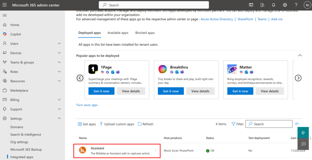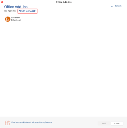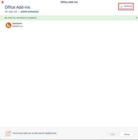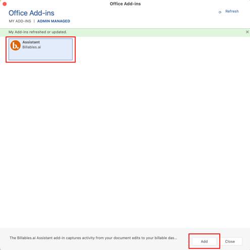 Select the Billables Assistant Add-In, then click "Add" in the bottom right: