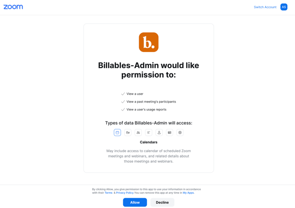Systems administrators can use the following instructions to grant access to company employees for the Billables AI Zoom integration. You must have administrative access to Zoom for your company in order to enact these changes. For more information about Billables AI privacy and protection, see our Security Overview.