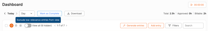 To keep the view all toggle turned on at all times, set up a preference in your Settings. Once turned on, the hidden entries will be shown by default when viewing your dashboard.