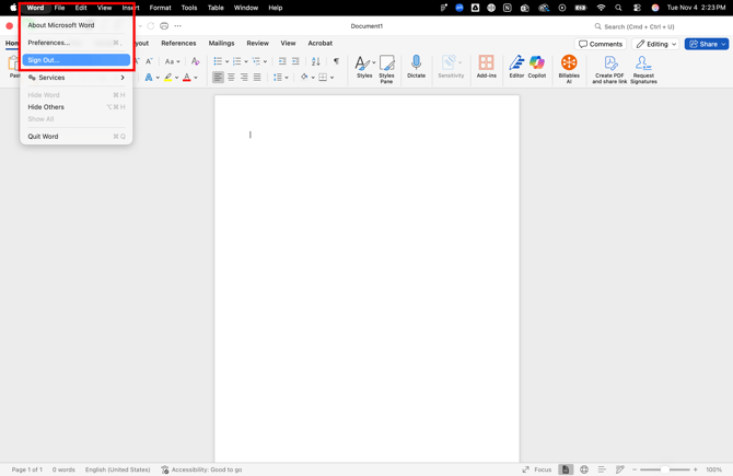 - Check on a Mac: Open Word/Excel and click on "Sign Out" in the top left to see the pop-up window. Click Cancel to avoid signing out.