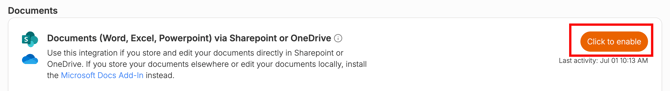 - If your email matches your Billables AI email, proceed to Step 3. If not, go to the Billables AI Integration page and click to enable the SharePoint and OneDrive integration (do this even if you don't regularly use SharePoint/OneDrive.
