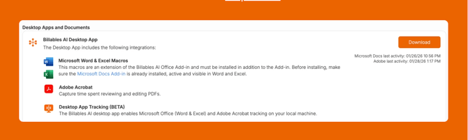 Download the Billables AI Desktop App today from the Integrations Page. To learn more, visit our Help Center.