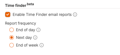 - Go to the Billables AI Settings page and find the section "Time Finder" section.